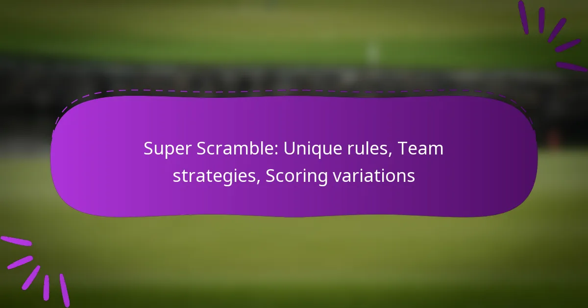 Super Scramble introduces distinctive rules that enhance teamwork and strategic play, setting it apart from traditional scramble games. Players must adapt to unique mechanics and diverse scoring variations, making it essential to understand these elements for effective participation and performance. By clearly defining roles and establishing communication, teams can develop tailored strategies that maximise their success in the competition.
